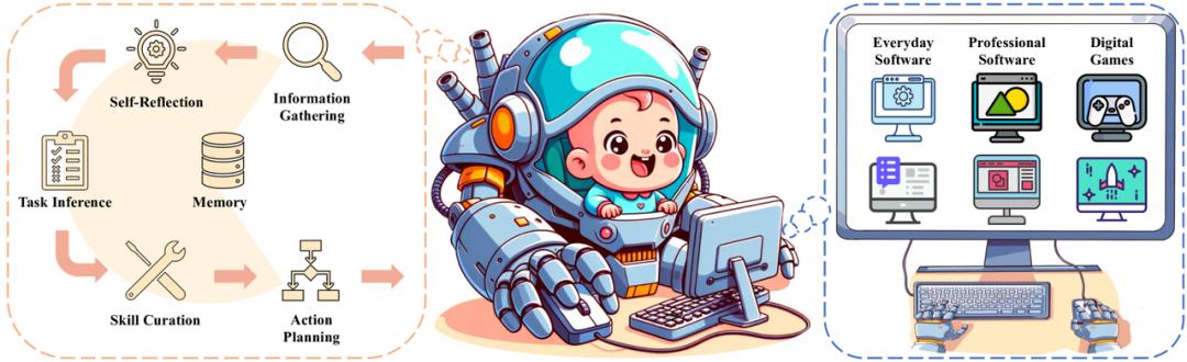 谭伟豪曾在2024年,发表过能「玩游戏」的智能体Cradle的相关论文,后者的底层基于GPT-4V,执行逻辑同样是以屏幕截图作为输入,输出键鼠操作。