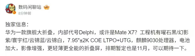 和Mate 80系列同台发布的,还有大折叠Mate X7。