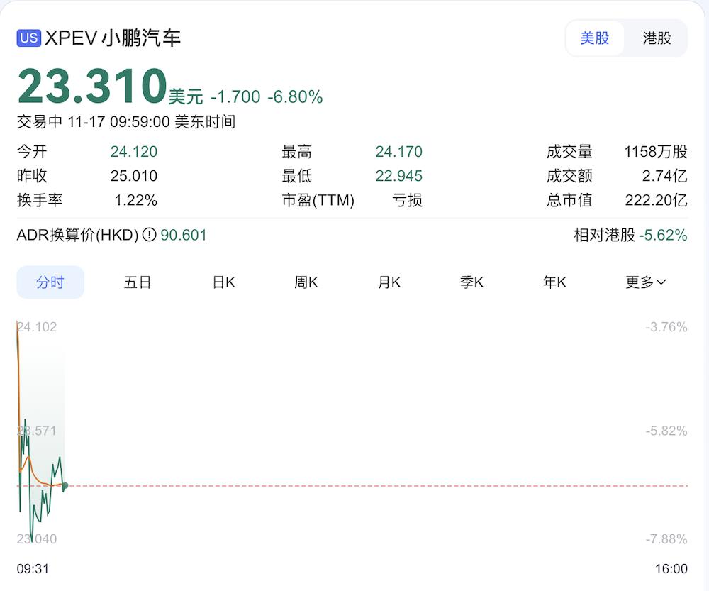 ▲截至发稿前小鹏汽车美股股价变化