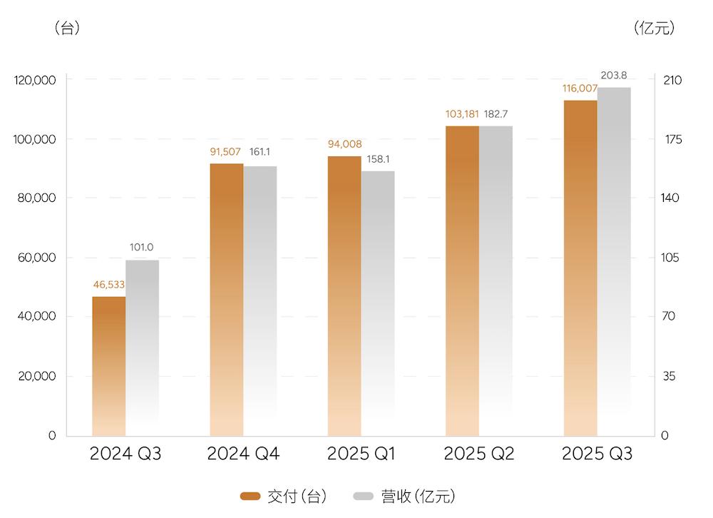 2025年第三季度,小鹏汽车总交付量为11.6万辆,较去年同期的4.65万辆同比增加149.3%。