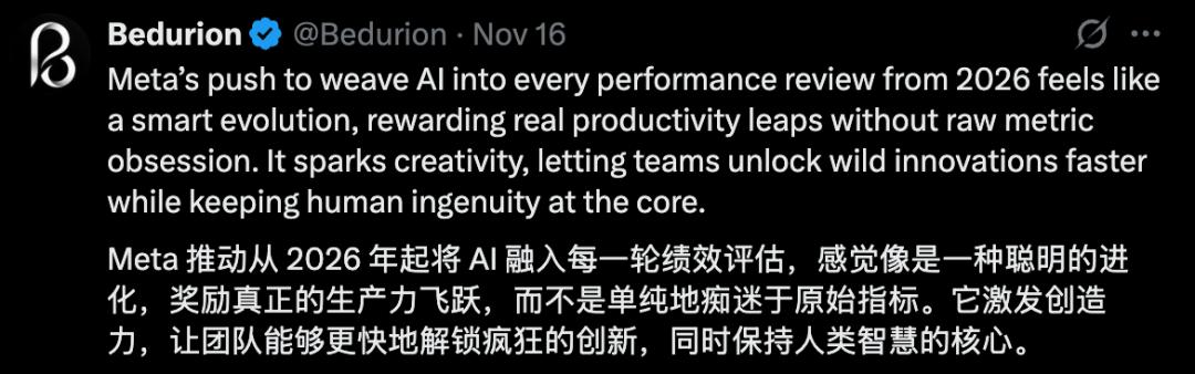 最近Meta在内部信函中宣布,从2026年起,AI将与员工绩效挂钩。