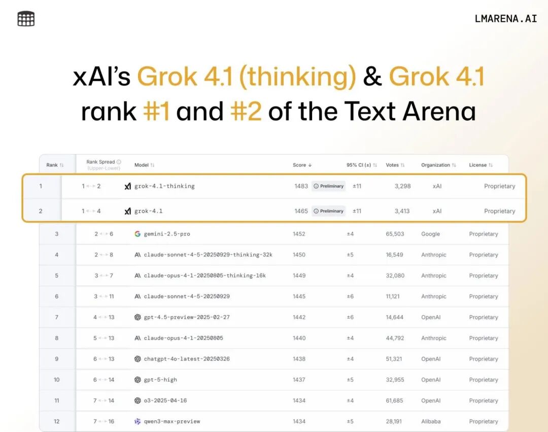 AI新王来了!马斯克Grok 4.1静默上线,一夜之间登顶LMArena,Gemini 2.5 Pro却被按在地上摩擦。主打情商智商在线,算力又扩增一个数量级。