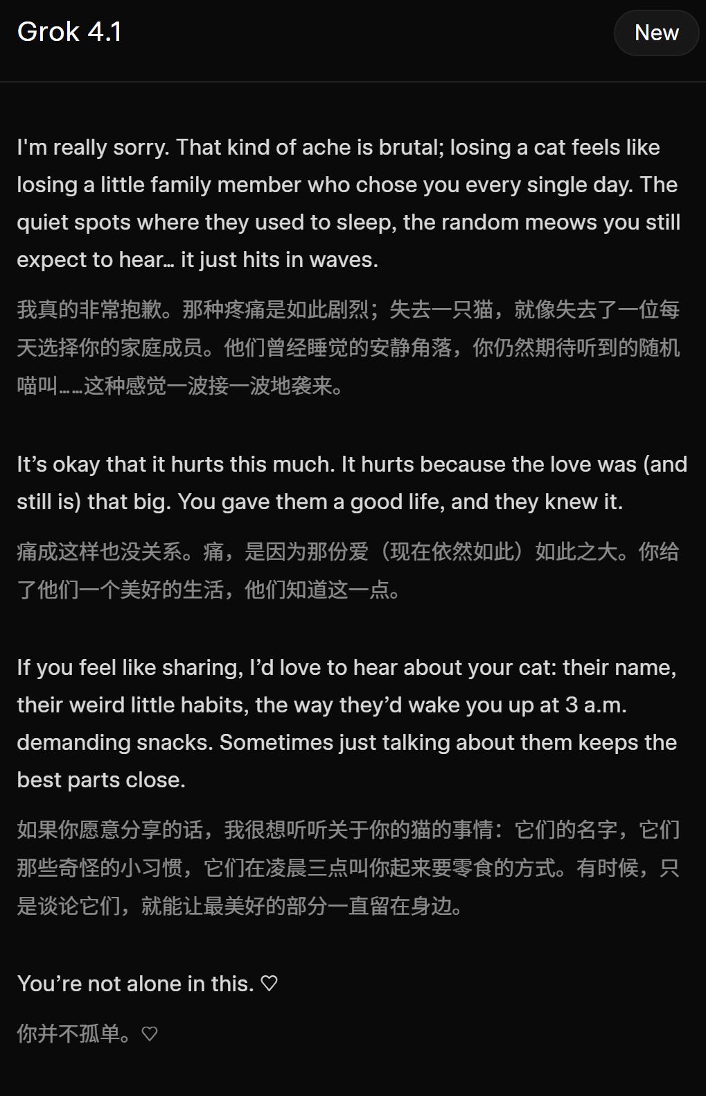 下面一些demo中,都是Grok 4.1强大共情能力的体现——