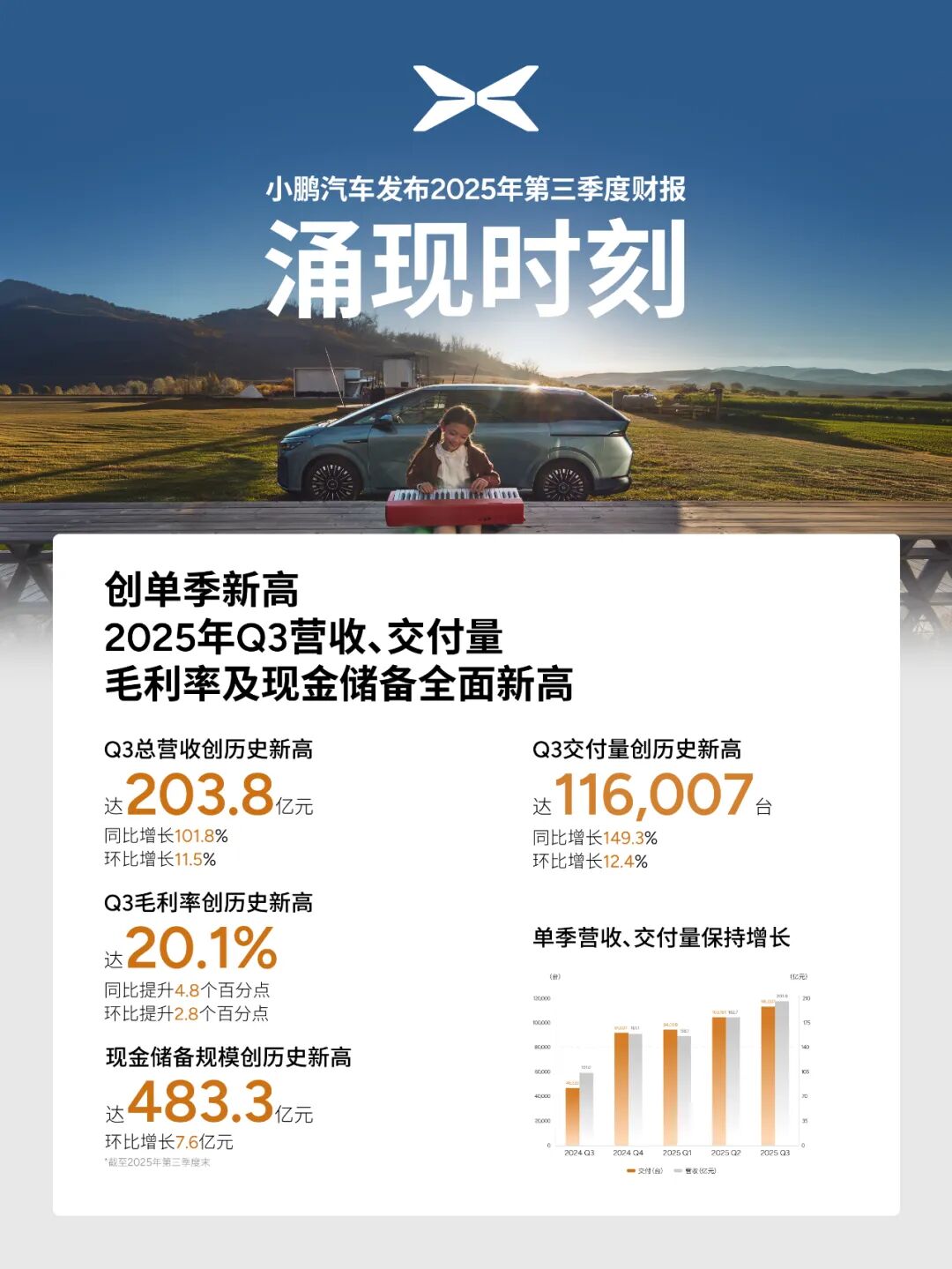 ▲小鹏汽车2025年第三季度财报。图 / 小鹏汽车官方