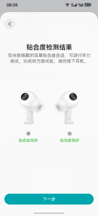 耳塞贴合度检测:根据提示,调整每只耳机的位置和深度,并完成耳塞贴合度检测。