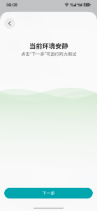 选择安静的环境:为确保听力测试的有效和准确,请选择安静的环境下进行测试,并点击下一步。
