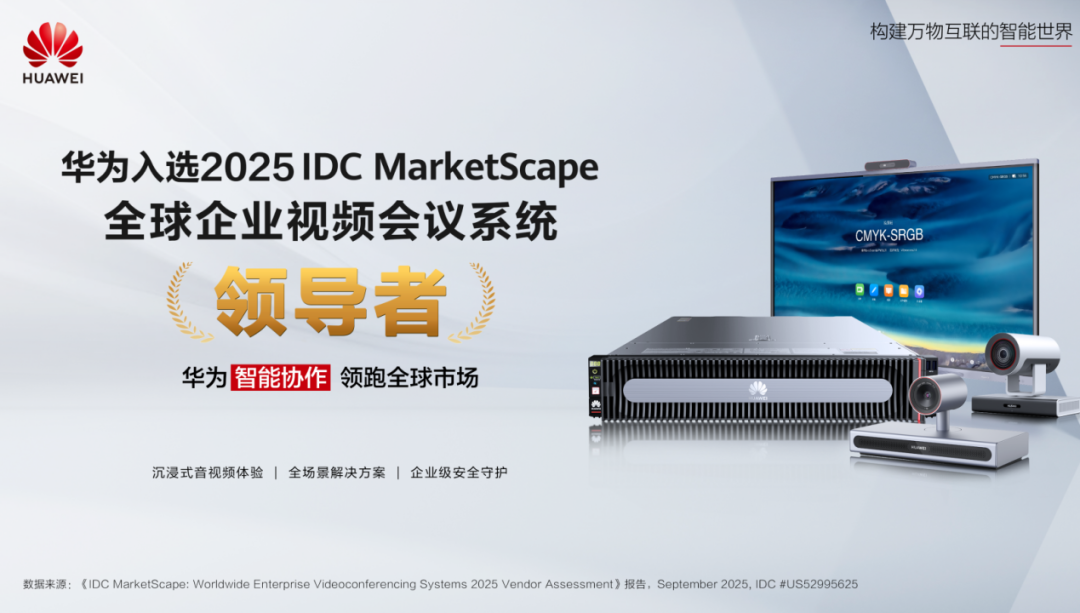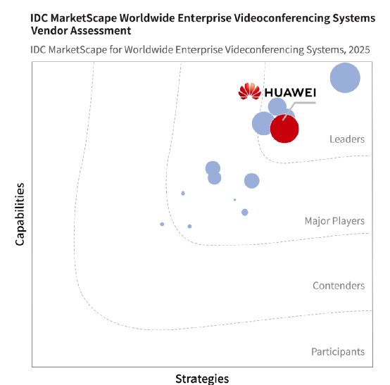 近期,国际数据公司(IDC)发布了《IDC MarketScape:全球企业视频会议系统 2025 供应商评估报告》。在对 13 家主流厂商的策略执行、硬件软件能力、服务体系及市场影响力进行全面评估后,华为成功位列领导者。