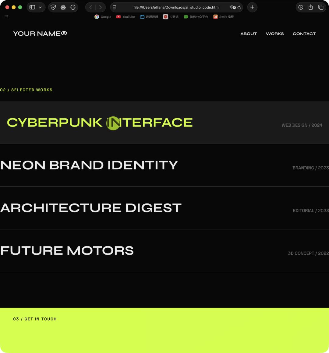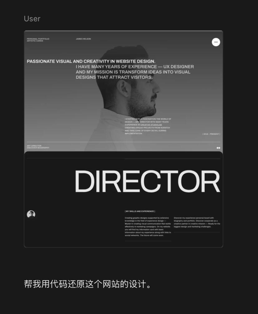 于是我和它说,“我想要全球顶尖设计工作室网站的风格,色彩和排版可以更大胆一些。”