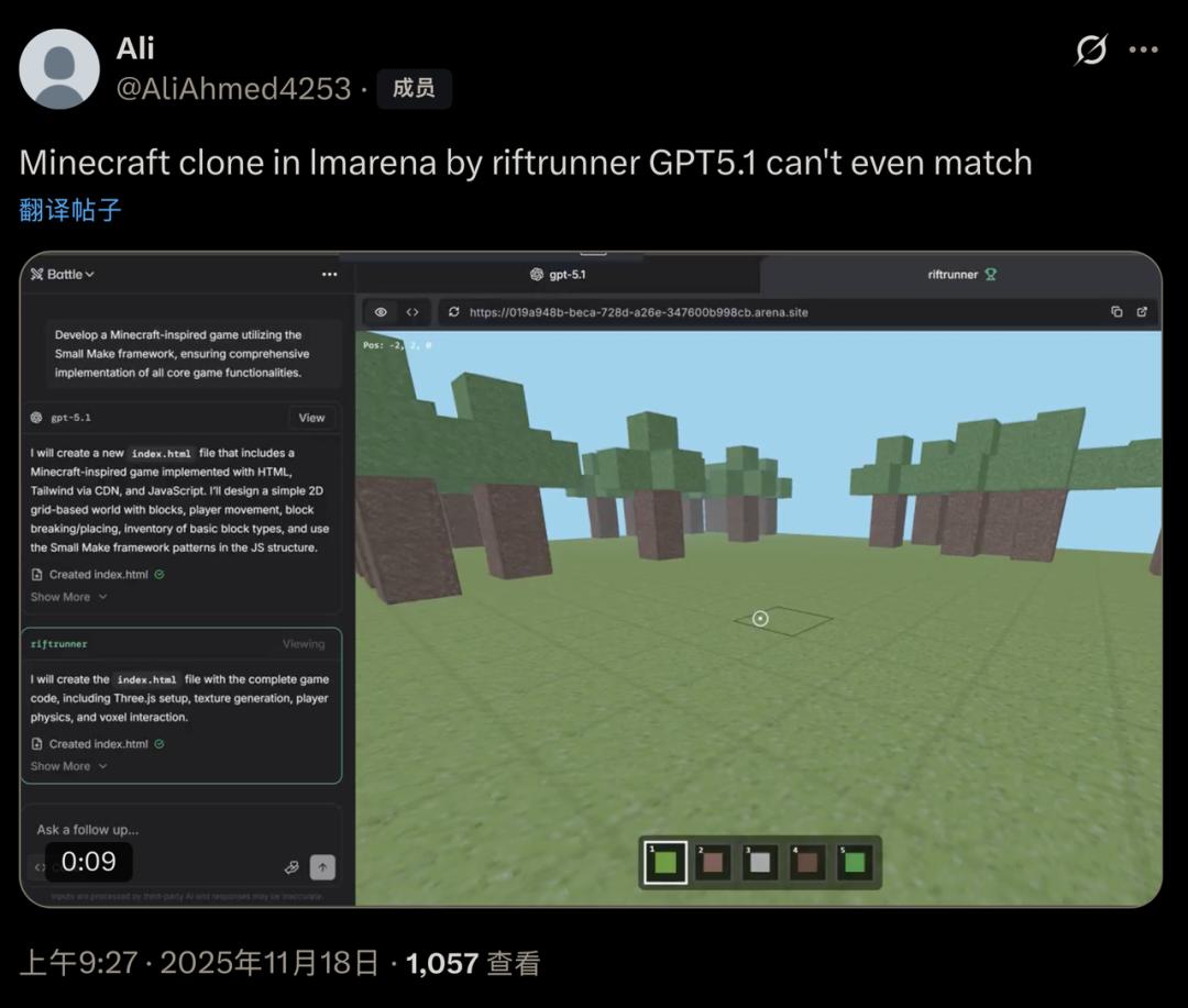 这还属于基本操作。有网友让 Gemini 3 做了个《我的世界》,Gemini 做得像模像样。