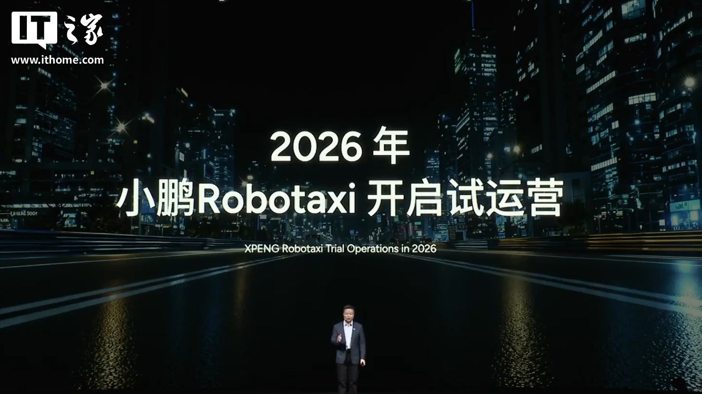 IT之家注意到,在 11 月 5 日的 2025 小鹏科技日活动中,小鹏官宣入局 Robotaxi 无人驾驶出租车,将在 2026 年推出三款 Robotaxi 车型。