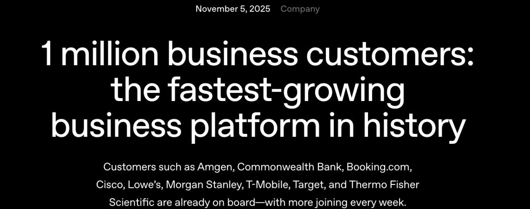 其「企业客户」已突破100万家,成为「历史上增长最快的商业平台」。