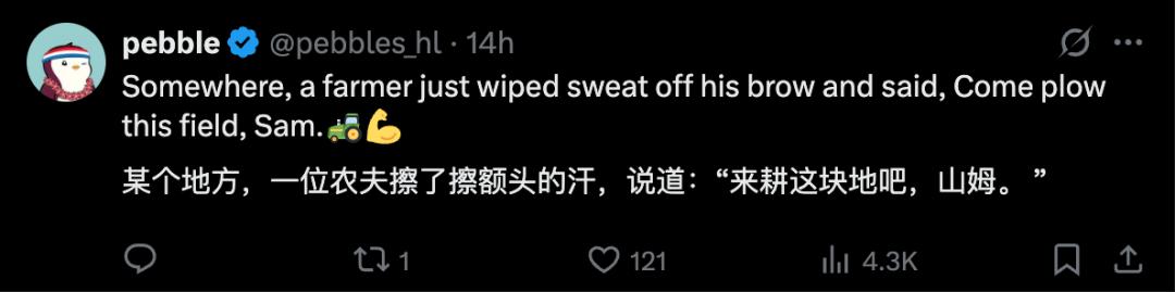 奥特曼的警示同样适用于自己:如果哪天AI取代了他的CEO职务,他就去做农民,就像从前一样。