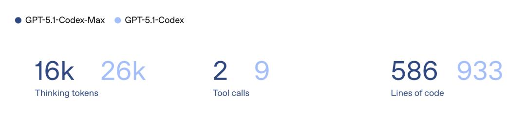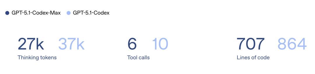 GPT-5.1-Codex-Max仅用27k思考token完成了任务,而且代码更加精简。