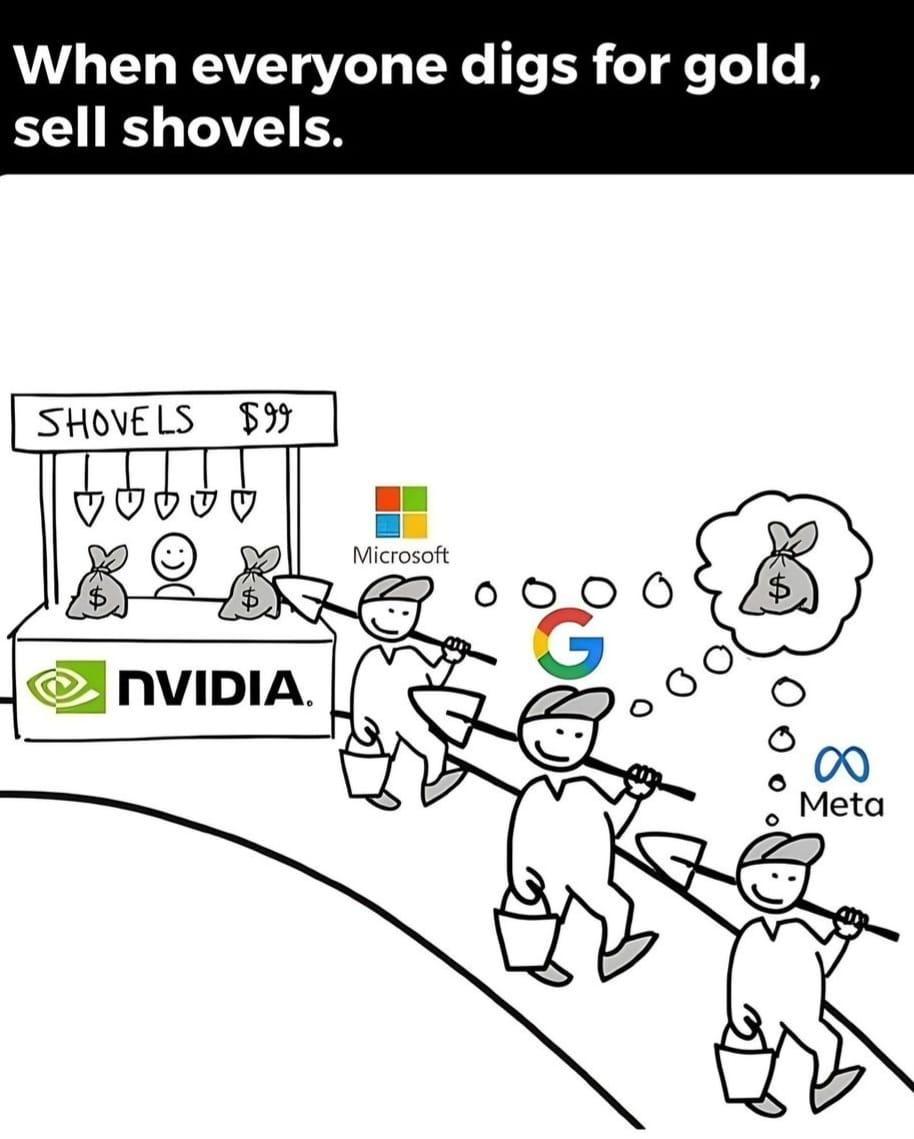 相比之下,英伟达的商业逻辑更接地气——它提供的是「铲子」:用来支撑AI模型运行的硬件芯片。