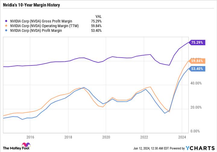 据FinanceCharts数据,英伟达最近12个月(截至2025年)毛利率约为69.8%。