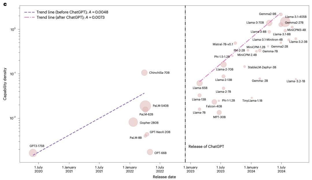 大模型密度法则:大模型能力密度,随时间呈指数上升趋势