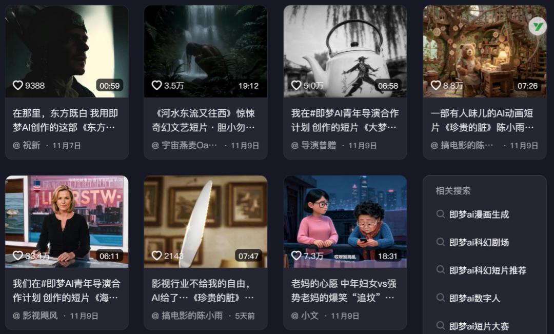 11月9日,即梦AI推出“青年导演合作计划”,优选7位超创完成100天创作流程,制作国风、科幻、悬疑、治愈动画等各类型具备代表性的短片作品,并在上海举办线下影院首映礼。