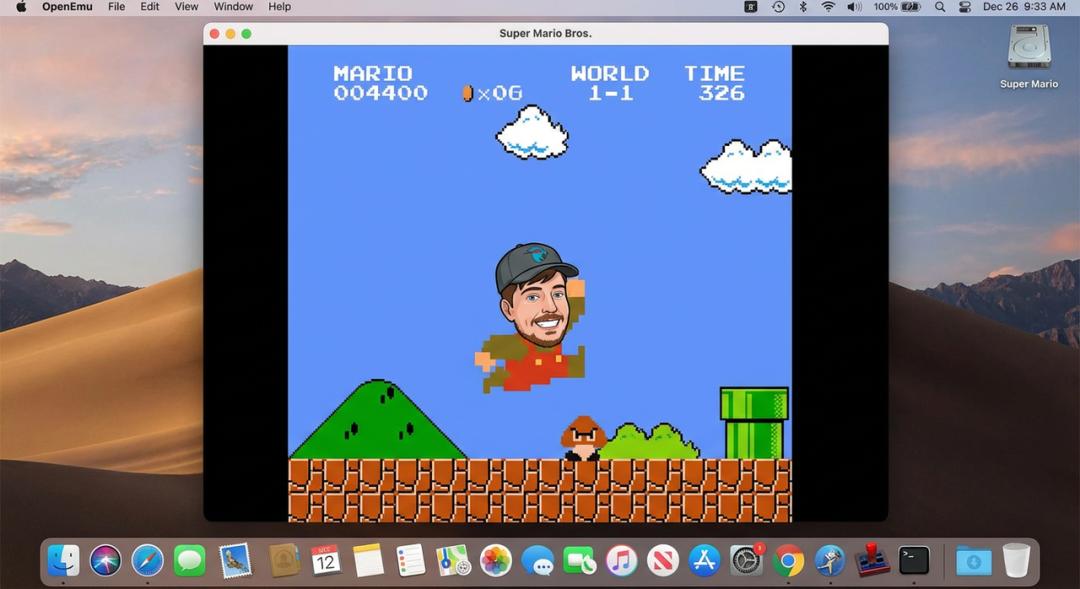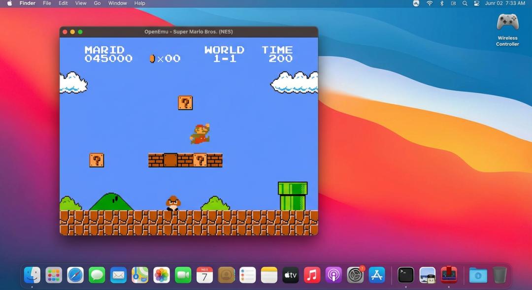 提示词:生成一个正在 macOS 上用游戏模拟器玩《超级马里奥》的截图。