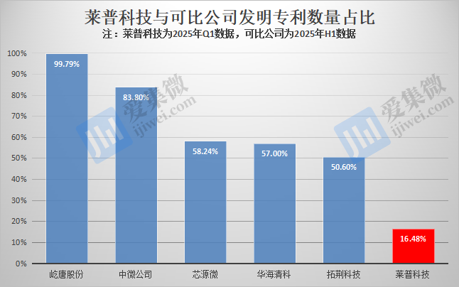不仅如此,可比公司中,发明专利占比均超过50%,而莱普科技的发明专利占比仅为16.49%。