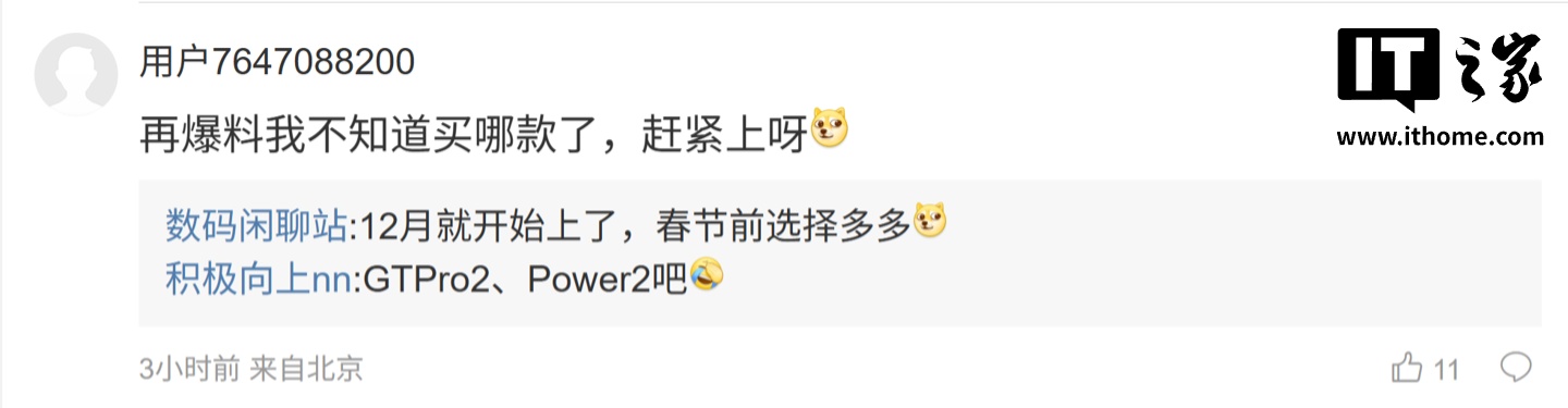 结合博主评论区回复,这几台手机将在 12 月开始陆续发布,同时根据博主文中暗示和评论区猜测,预计这几台机器中有荣耀 X80、Power 2、GT2 等。