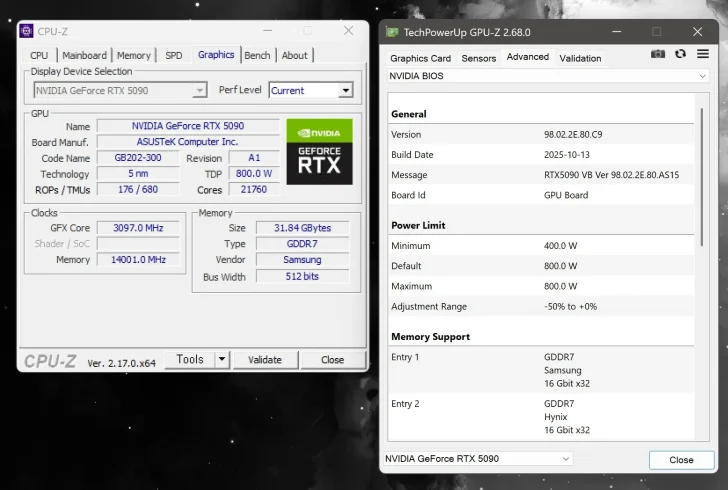 然而,这款显卡售价高达 3999 美元(IT之家注:现汇率约合 28443 元人民币)。因此,不少用户开始尝试将其 BIOS 刷入更便宜的 RTX 5090 非公卡上,以解锁更高的频率与功耗墙。