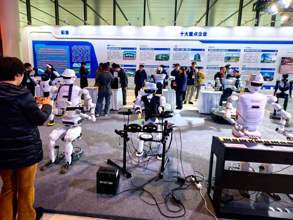 一支“机器人乐队”在2025世界计算大会现场为与会者表演。