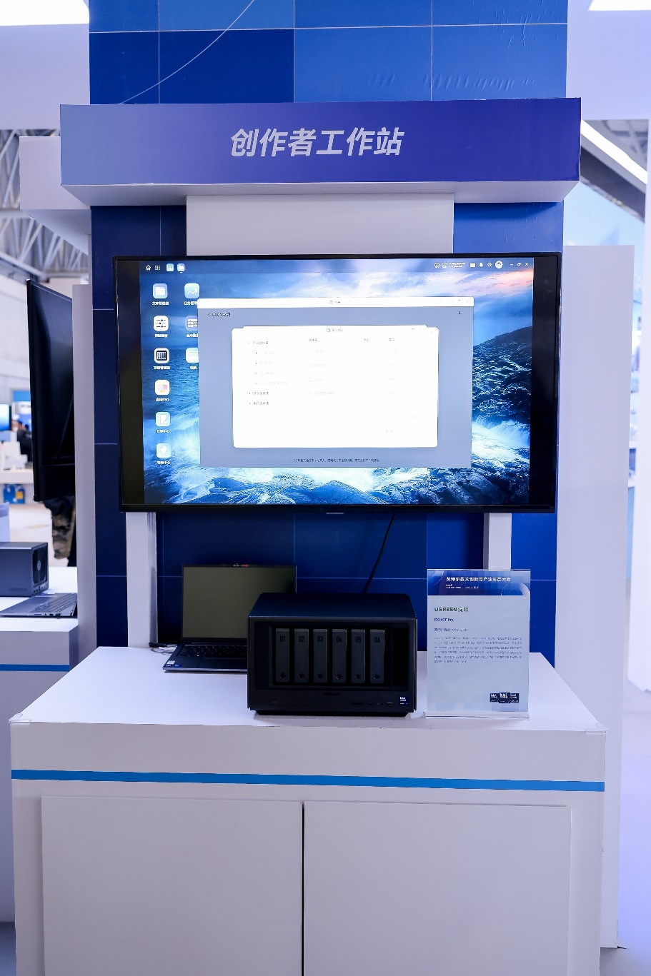 本次生态大会上绿联也展出了即将上市的AI NAS产品iDX6011 Pro:依托英特尔® 酷睿™ Ultra 7 255H平台,是一款内置本地大语言模型的AI NAS设备,可为海量素材提供高速稳定的存储空间,AI算力强劲,可本地实现多项AI功能,在保障数据隐私安全的同时,为用户在素材管理、智能检索与高效创作等场景中带来突破性体验,UGOS Pro系统内置的AI Chat、智能会议总结等智能功能,以及家庭相册分类、影视海报墙生成等实用应用,吸引了众多嘉宾驻足展台详细了解、上手体验。