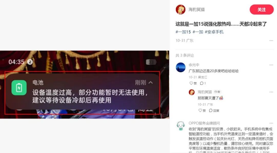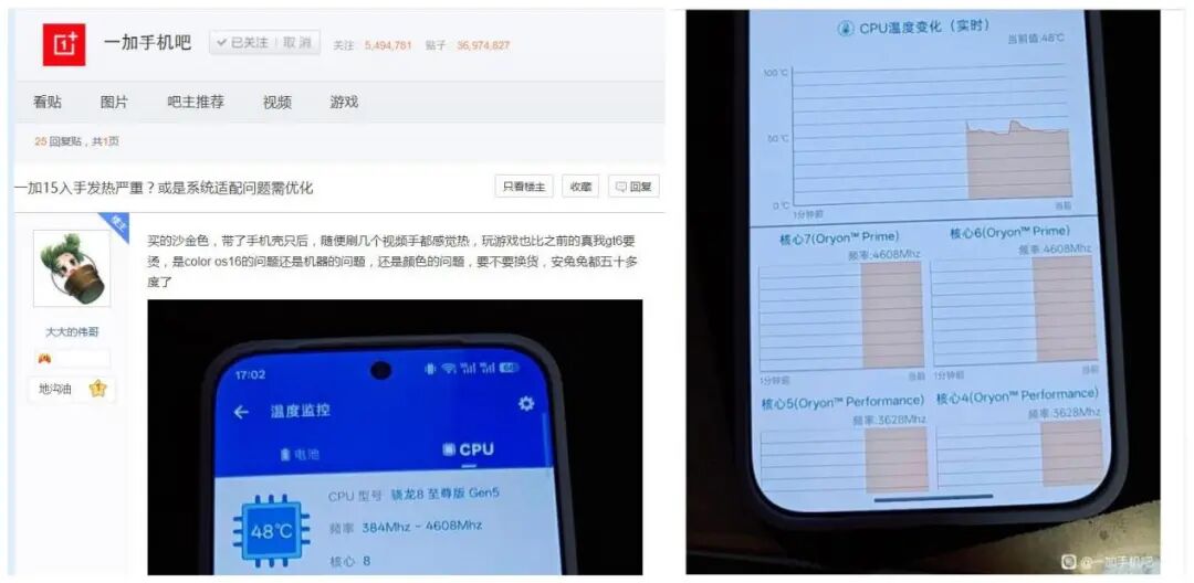 继续回到一加15的发热严重现象,是否仅是这名爆料博主的个例?