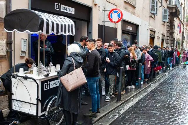 图:美国用户排成长龙抢购一加手机