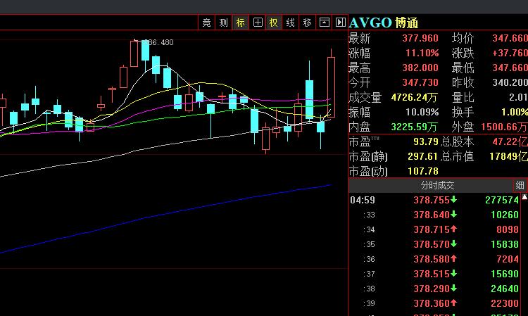 美东时间周一,受谷歌股价强劲表现带动,作为其关键芯片合作伙伴的博通股价飙升。截至收盘,博通上涨11.1%,创下自4月9日以来的最佳单日表现。