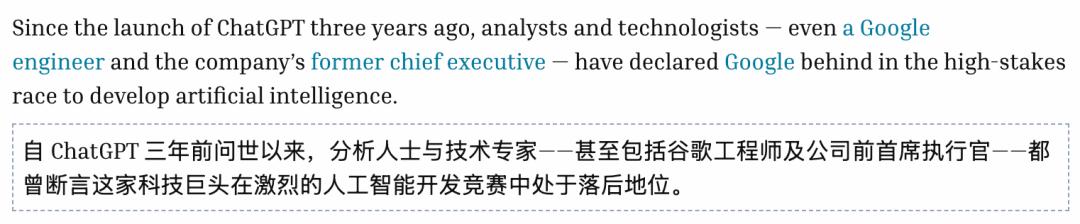 自从OpenAI开始靠着ChatGPT拿到AI时代话语权后,外媒、甚至包括谷歌自己的工程师和前CEO都在说:谷歌已经落后。