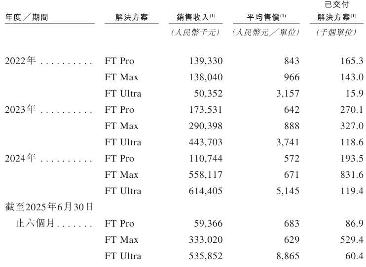 下表载列我们于往绩记录期,按解决方案类型划分的销售收入、平均售价以及实际交付解决方案数目明细: