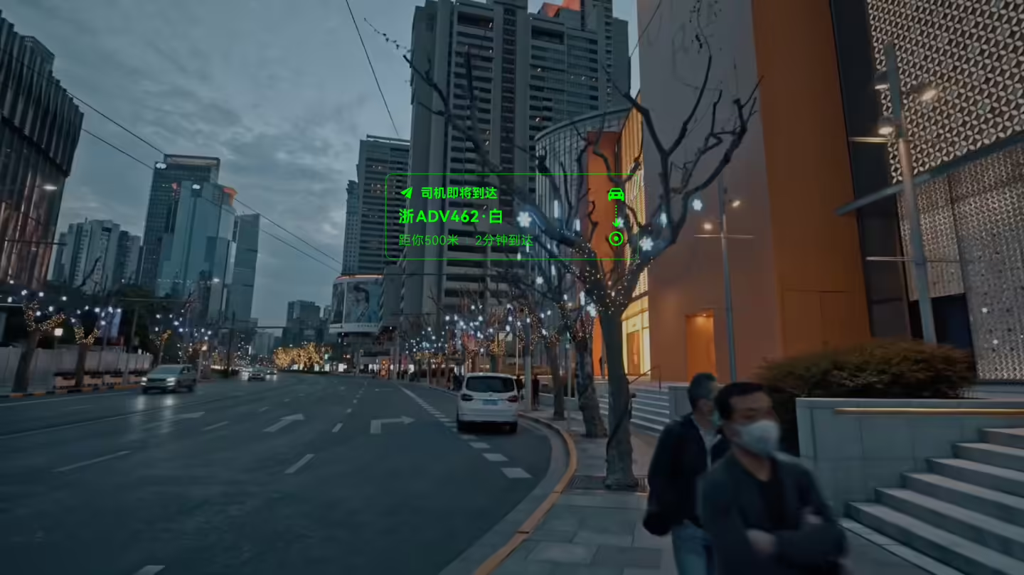 简单来说,就是镜片里还有一块“显示区域”,让设备实现了从“听觉交互”到“视听协同”的关键跨越:过去依赖语音播报的信息(如导航指引、支付确认、比价结果),如今可通过近眼屏幕直观呈现,既提升了信息传递的效率与准确性,也为复杂场景下的交互提供了更自然的解决方案。