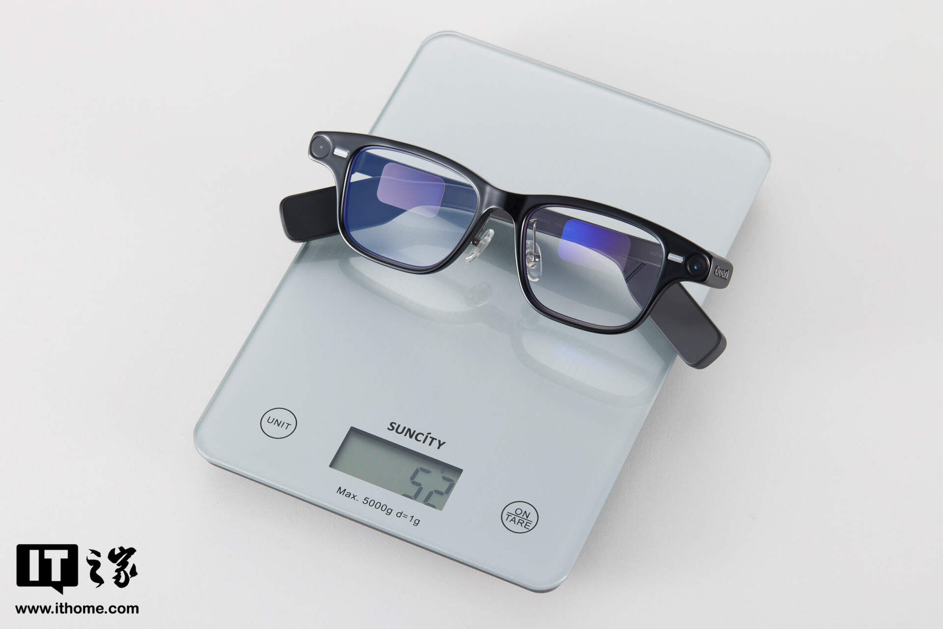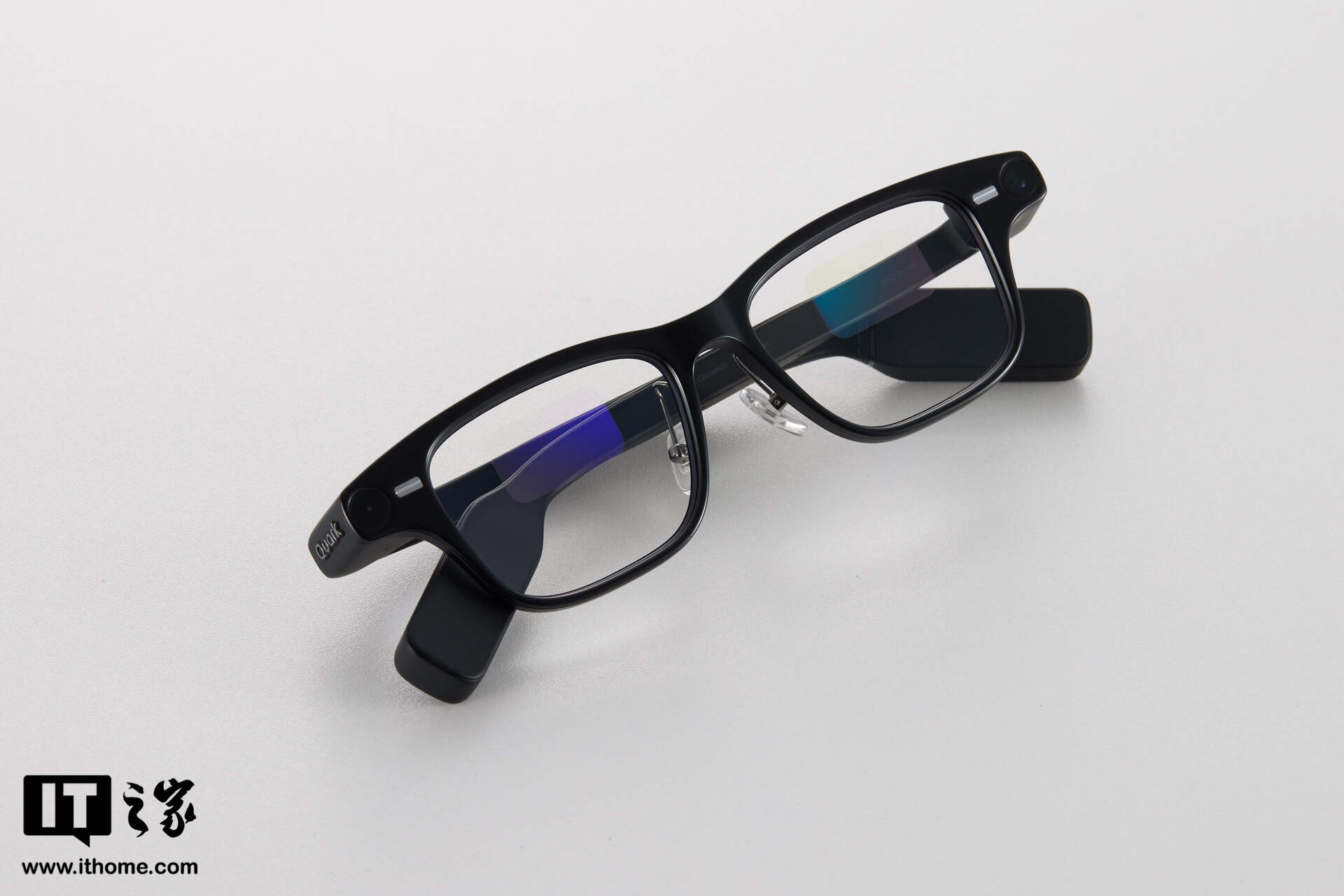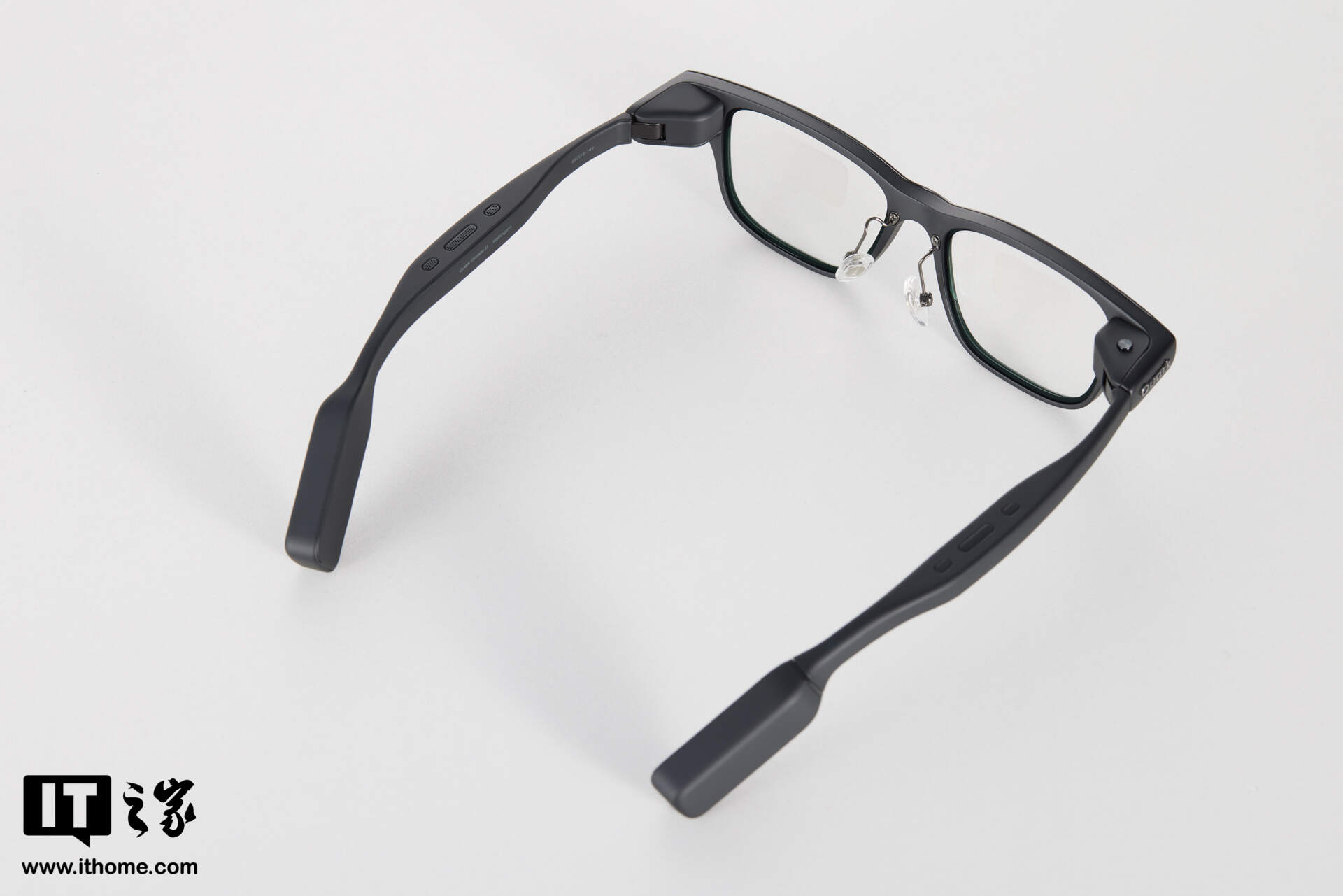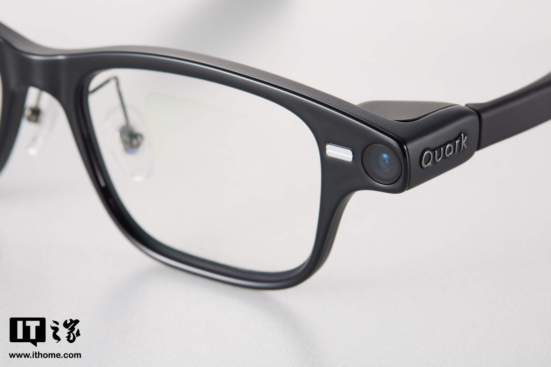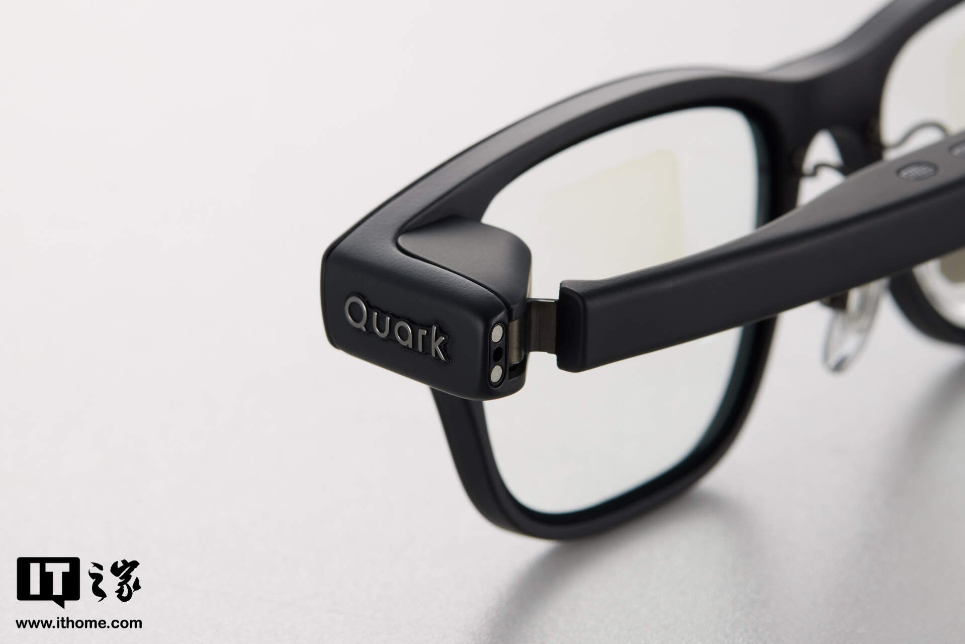 IT之家实测夸克 AI 眼镜的重量为 52g 左右(含平光镜片),在 AI 眼镜类产品中,属于较轻的那一档了。当然,这个重量确实也要比一些钛合金镜框重不少,但得益于 1:1 前后均衡配重,连续佩戴 2 小时之后,鼻梁处并未出现明显压痕,耳廓上方也无酸痛感,整体佩戴体验,可以谈得上“惊喜”了。