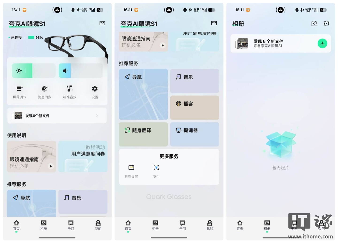 另外提一嘴,目前夸克 AI 眼镜的大部分功能都需要依赖于手机,除了拍照和录像之外,其它均无法独立运行。