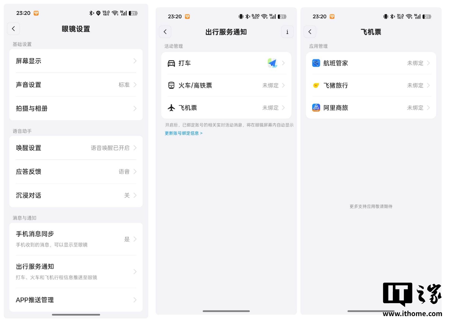 目前,出行服务通知目前仅支持阿里系应用,包括高铁管家、阿里商旅、飞猪旅行,尚不支持滴滴,以及航旅纵横等第三方应用,希望后续能尽快 OTA。