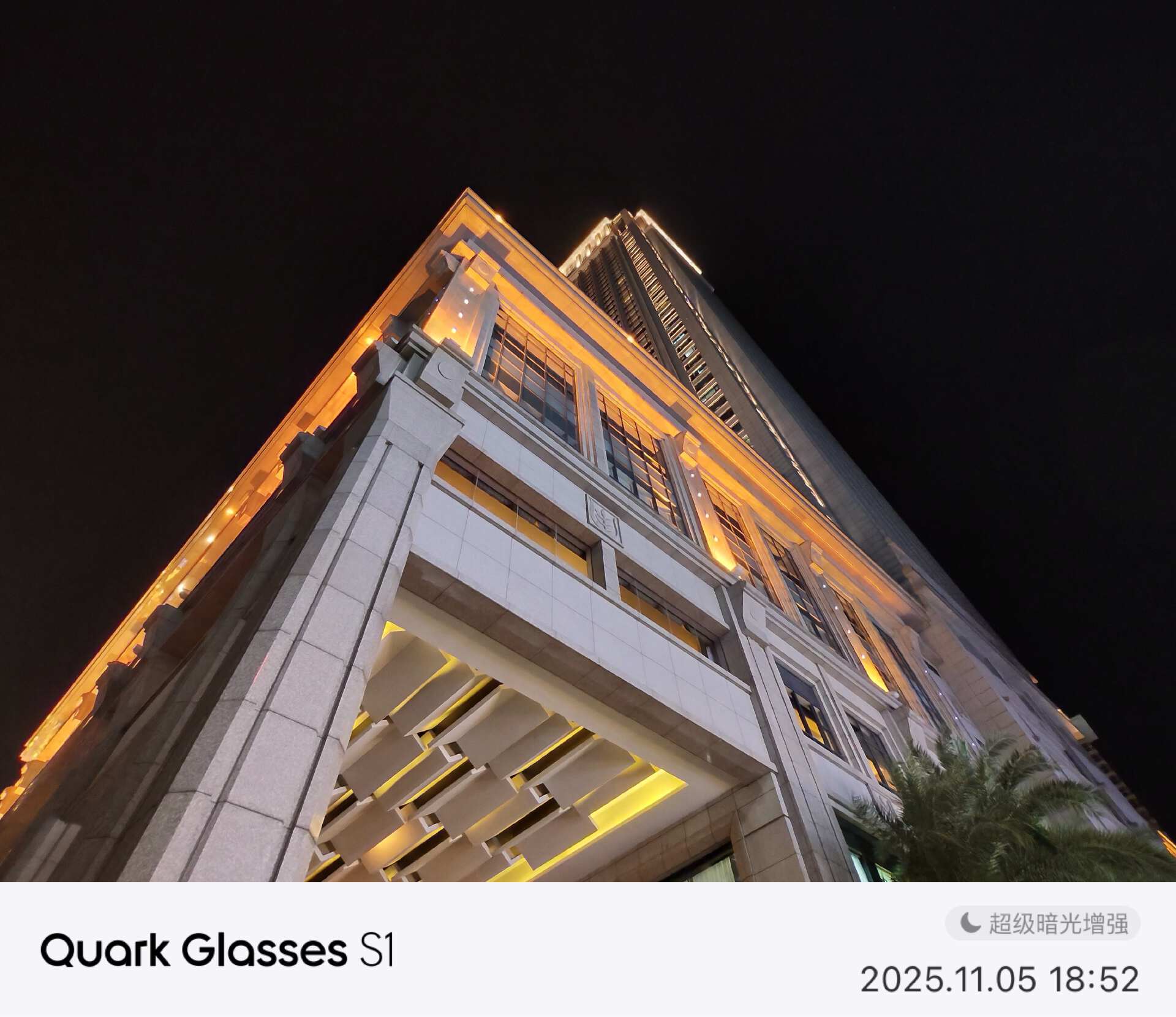 据官方资料,阿里首次将手机级的 SuperRAW 暗光处理算法应用到了眼镜上。在夜晚的街道拍摄时,多帧融合与自适应降噪技术发挥了巨大作用。实拍样张显示,画面纯净度极高,噪点控制优秀。