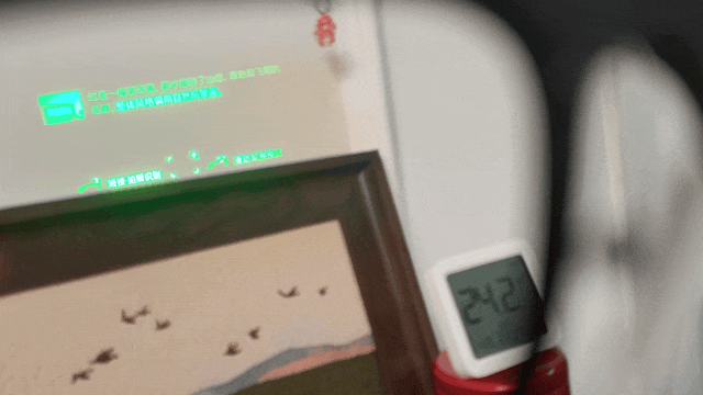 当笔者戴上夸克 AI 眼镜后,点亮屏幕的瞬间,赛博朋克的氛围感便瞬间拉满 —— 标志性的绿色单色屏,自然地悬浮于视线正前方。