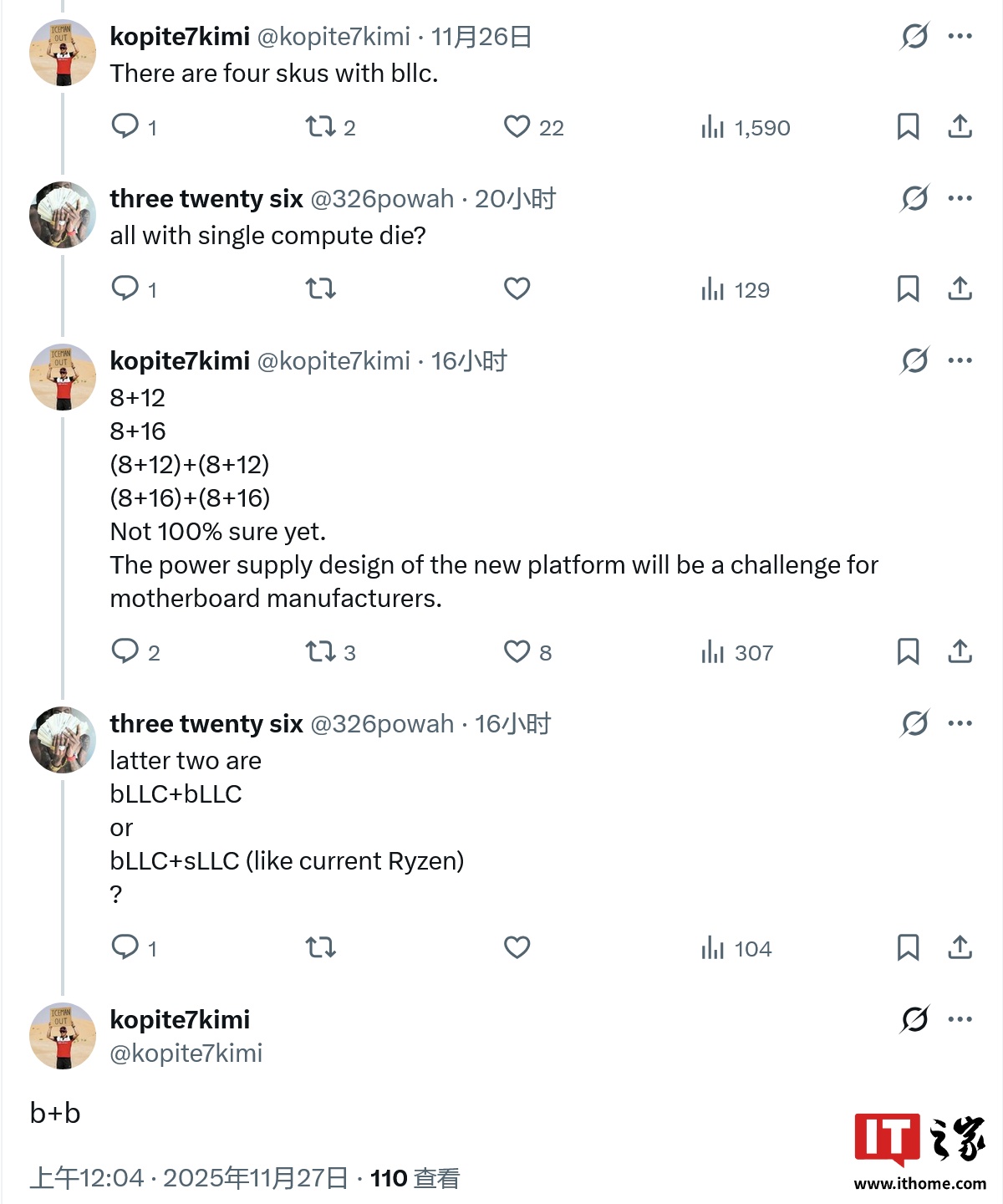 @kopite7kimi 认为,Nova Lake-S 平台的供电设计将为主板制造商带来挑战。这一方面是因为核心规模翻倍,此外与 bLLC 版本的存在也可能有关。