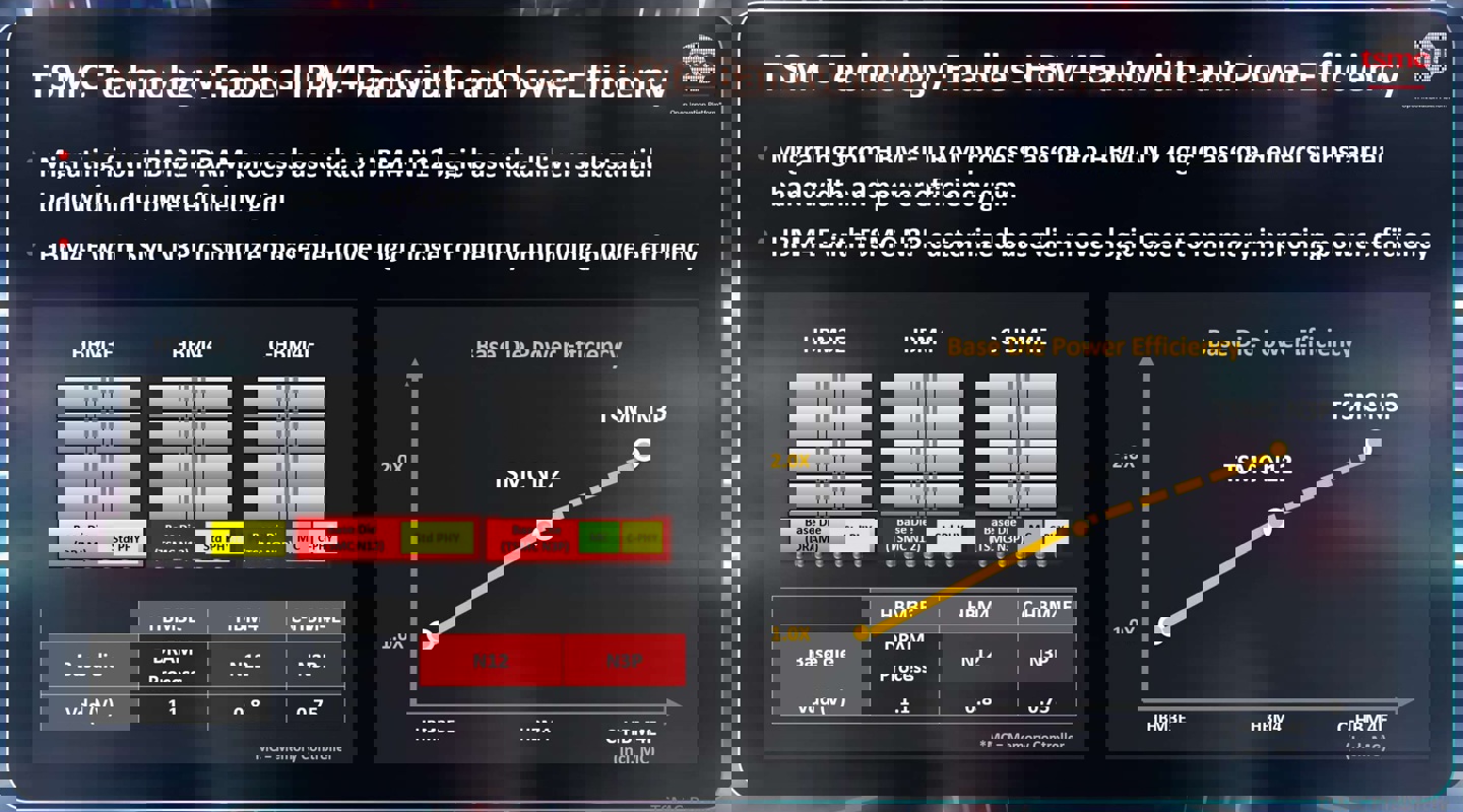 ▲ 图源:Andreas Schilling台积电在 HBM4 时代提供了 2 种不同的 HBM Base Die(基础裸片)制程方案,分别是面向主流市场的 N12FFC+ 和追求更高性能的 N5。
