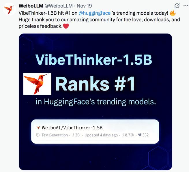 图  | VibeThinker大模型的推出,在海外也引发广泛关注