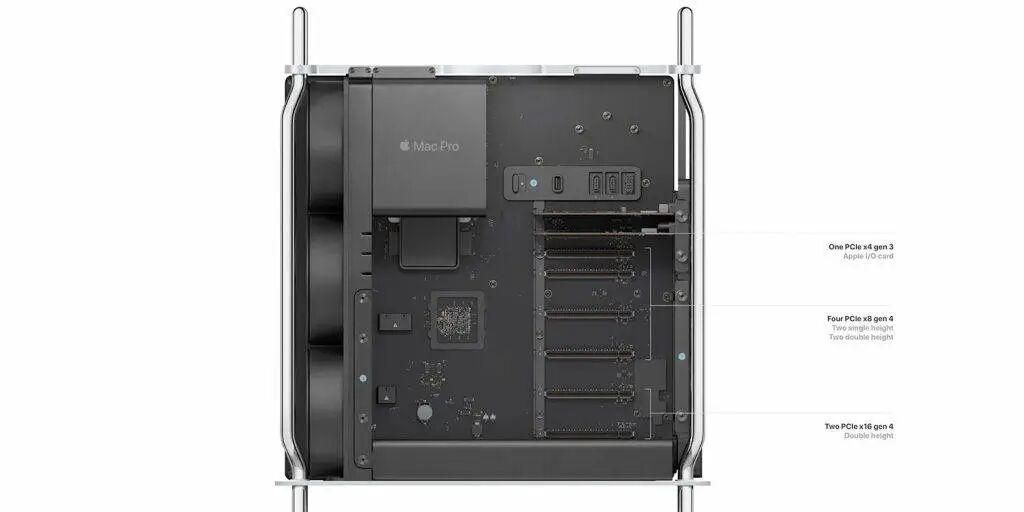 纵观 Power Mac 和 Mac Pro 的历史,或者说整个电脑历史,高性能的主机以往似乎只有一种解题思路——巨大的塔式机箱,内部布满等着用户自己魔改的插槽。
