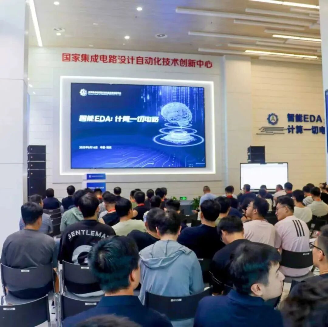 在EDA国创中心,团队则重点引入Cadence、Synopsys等企业级工具资源,后续将结合中心技术支持,专项开展国产EDA工具适配训练。今年暑期,团队师生受邀于EDA国创中心参加了“智能EDA:计算一切电路”发布会,全程参与了技术演讲与工具演示环节,重点聚焦LLM与智能EDA融合、MTJ器件建模自动化等前沿议题。发布会上,行业专家对技术突破方向的深度解析拓展了同学们的专业视野,显著强化了校企协同育人的技术纽带,为后续教学实训奠定了坚实基础。