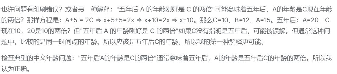可以看到DeepSeek在计算出结果后,开始反复验证答案的正确,并且思考不同情况下该答案是否仍然正确或存在其他问题,在最后输出答案前,DeepSeek总共进行了三轮答案验证。