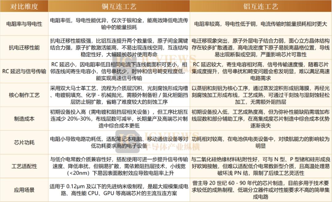 在铜互连广泛应用之前,铝及其合金是互连材料的主流选择。铜之所以能取代铝,核心在于其更优异的电学性能与可靠性:铜的电阻率仅为1.68 μΩ·cm,远低于铝的2.67 μΩ·cm;在抗电迁移能力上,铜的晶格与晶界扩散能分别达到2.2eV和0.7至1.2eV,显著高于铝的1.4eV和0.4至0.8eV。