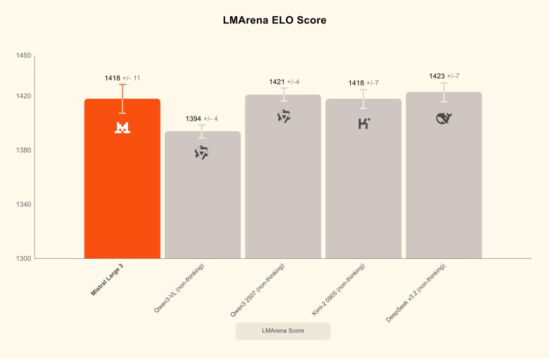 Mistral Large 3在多个核心基准上与DeepSeek、Qwen正面对比