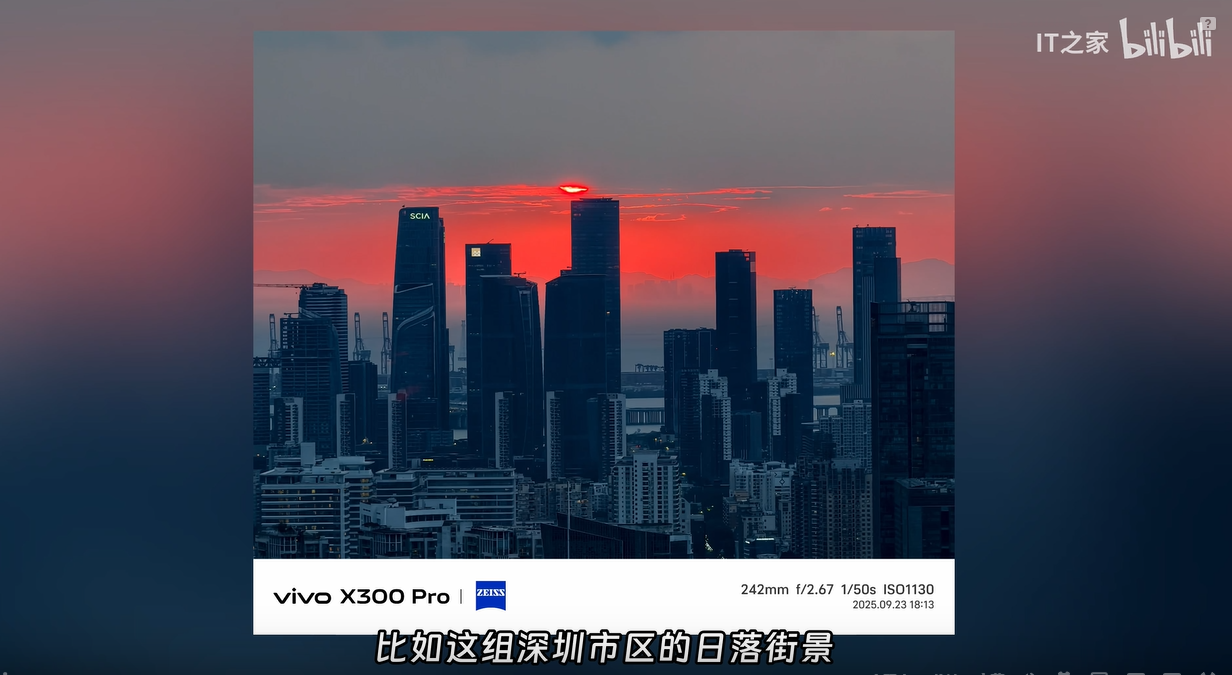 另外 vivo X300 Pro 的长焦镜头在暗光环境下的拍摄效果也非常出色,比如下面这组深圳市区的日落街景,将台风来临时的那种黑云压城和红日霞光展现得很有感觉。