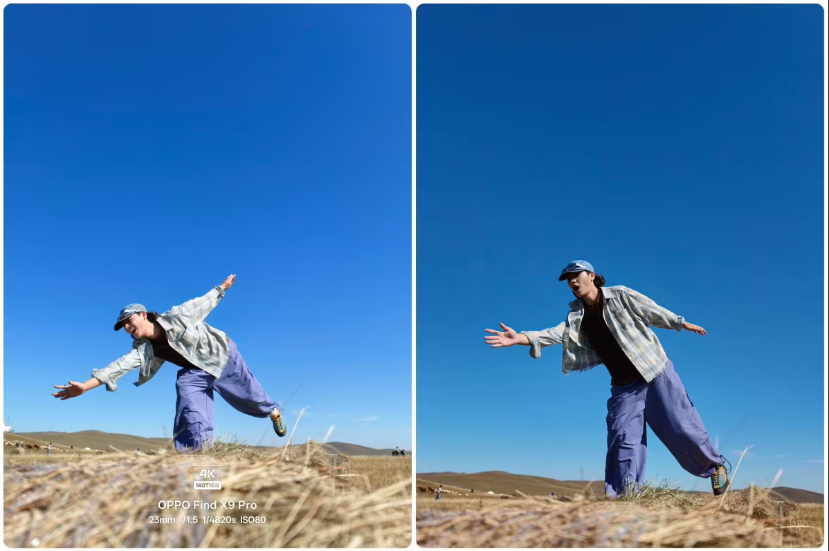 OPPO Find X9 Pro 另一项重大升级是 4K 超清实况照片。如果说 iPhone 发明了实况图,那么 OPPO 就是全面进化了实况,清晰度直接提升 4 倍。不仅封面帧是 4K 画质,播放过程中的每一帧动态画面都达到了 4K 级别。