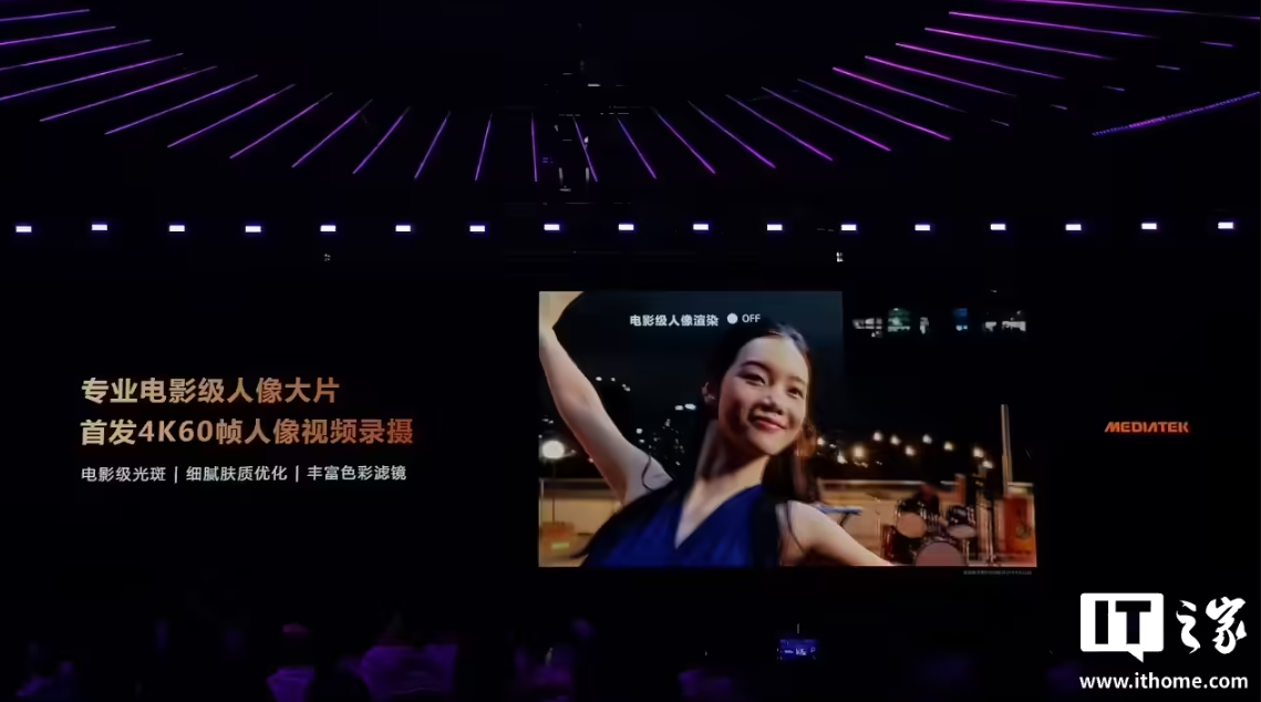 比如天玑 9500 支持行业首个 4K / 60fps 电影级人像视频拍摄功能,并且拥有极致能效表现。通过专用人像渲染引擎,实现电影级的景深光斑、肤质打光、调色风格等等业界首发功能。