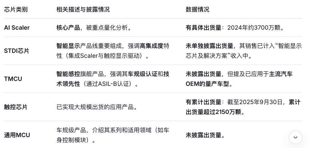 主营Scaler芯片持续扩大规模,已经基本迈过“转正”门槛,已经布局了触控、方向盘HoD、车灯、电机驱动、屏幕、电池等细分方向。